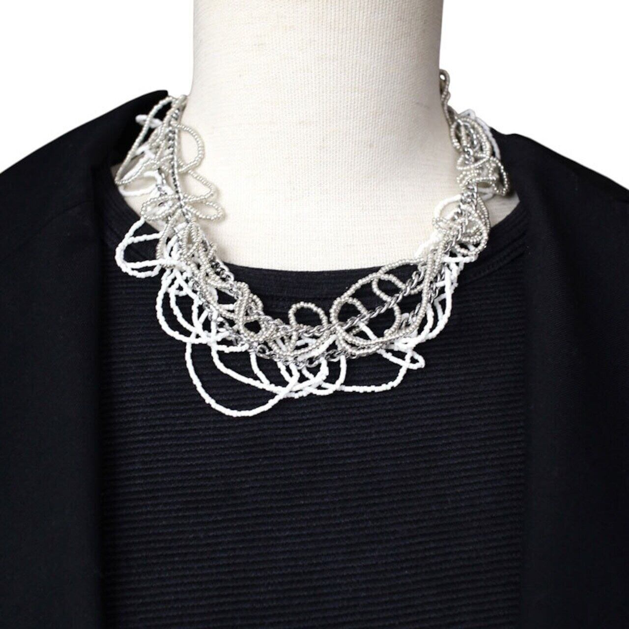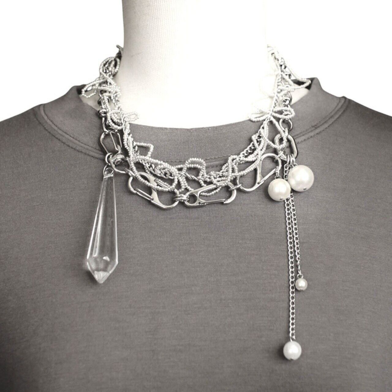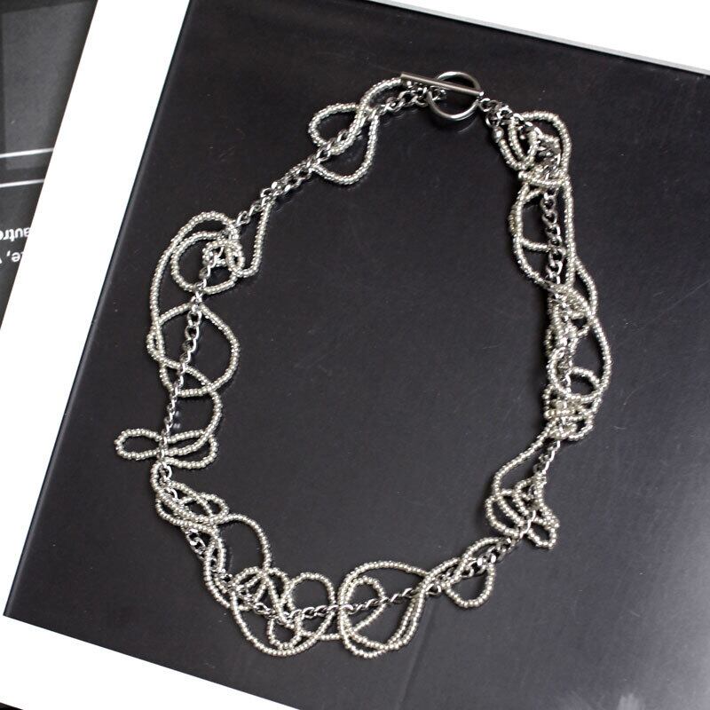 ステンレスチェーン、ガラスビーズ