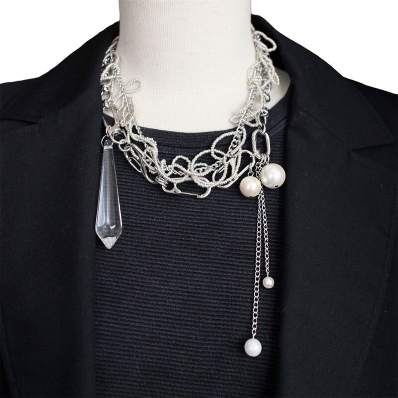 ステンレスチェーン、樹脂パール、アクリル、合金パーツ