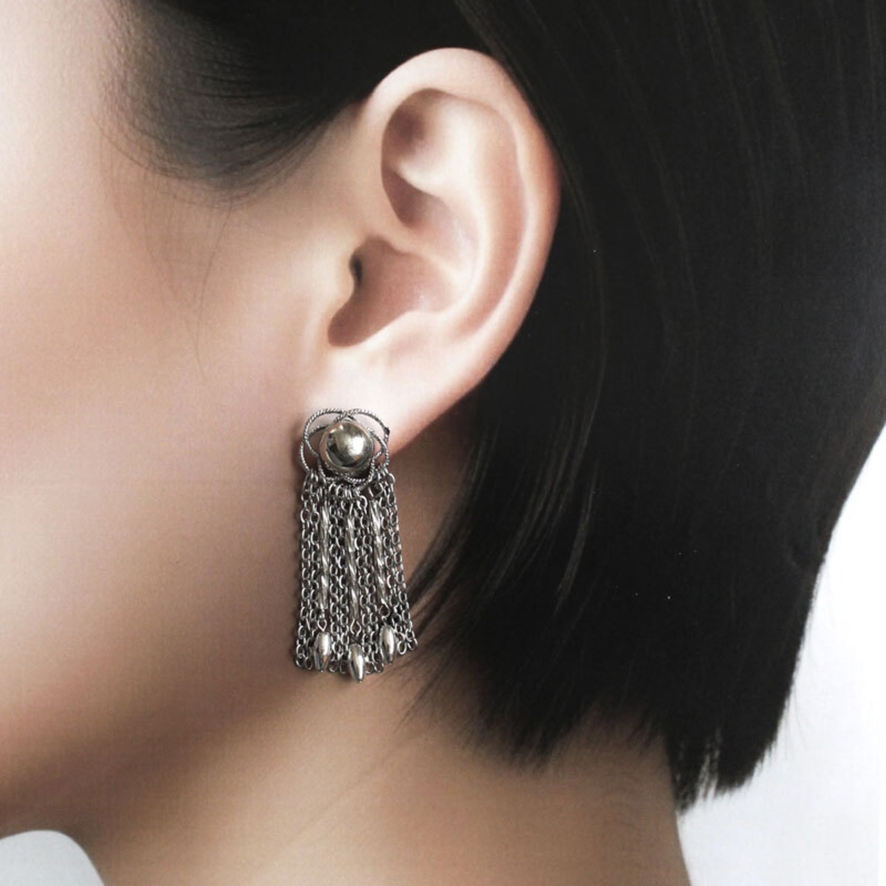 チェーンとビーズのしゃらしゃらピアス。